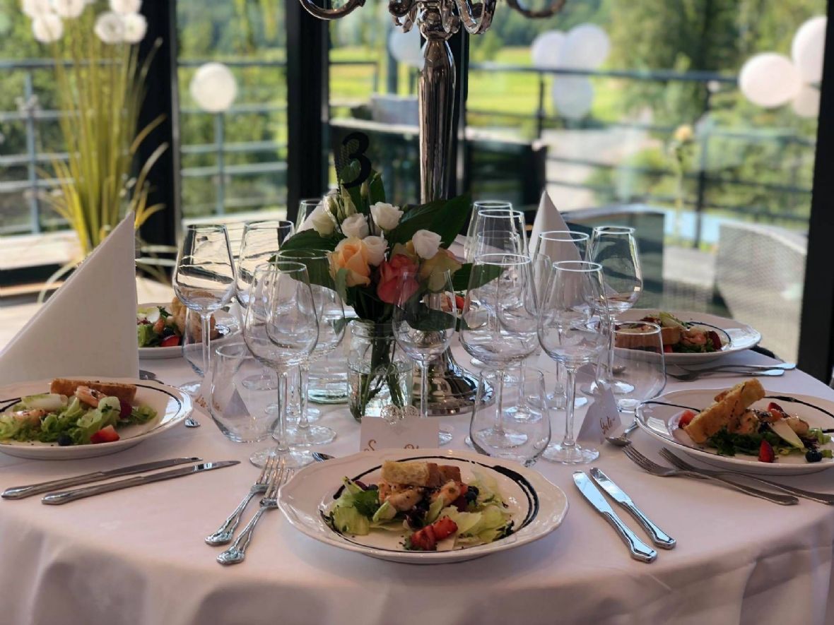 Vårt selskapslokale har plass til ca. 90 gjester. Lokalene består av et større hovedrom med stor takhøyde og store vindusflater som gir godt lys, og flott utsikt over området.. På ene siden av hovedrommet er det et chambre separée, som lett kan åpnes inn mot hovedrommet.